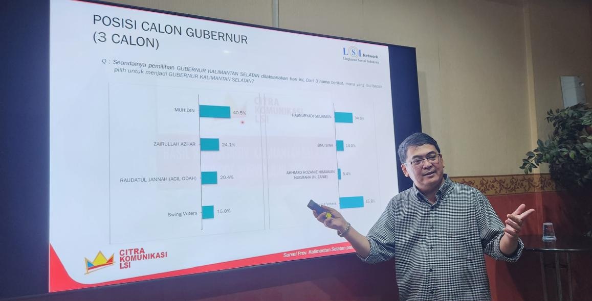 Direktur Eksekutif Citra Komunikasi LSI Denny JA, Toto Izul Fatah memaparkan, hasil survei tersebut menjelaskan Hasnur juga unggul dalam simulai head to head dengan kandidat lain diluar Golkar, seperti melawan Zairullah, Ibnu Sina, Ahmad Rozanie (H. Zanie) dan yang lainnya.