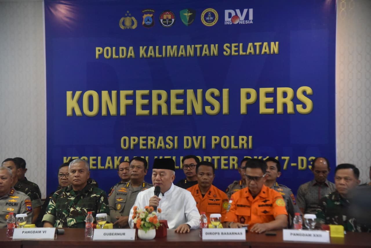 JURNALKALIMANTAN.COM, BANJARMASIN – Gubernur Kalimantan Selatan, H. Muhidin, menyampaikan apresiasi kepada tim relawan gabungan dan masyarakat yang telah bekerja keras menemukan serta mengevakuasi delapan korban kecelakaan helikopter BK117-D3 milik PT Eastindo Air di kawasan hutan Air Terjun Mandin Damar, Kecamatan Mantewe, Kabupaten Tanah Bumbu.