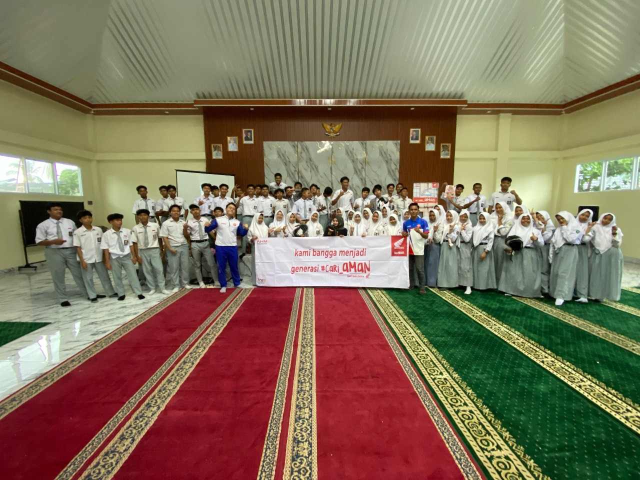 Puluhan siswa-siswi SMKN 1 Marabahan yang aktif menggunakan sepeda motor antusias mengikuti sesi edukasi yang dipandu oleh Yoga Prabowo, PIC Safety Riding PT Trio Motor.