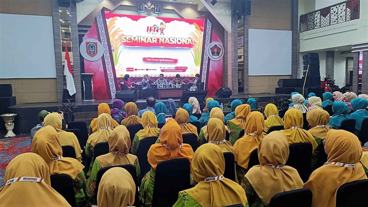 Diketahui pada Seminar Nasional Peran Perempuan Sebagai Pondasi Generasi Emas 2045 di Indonesia, diikuti ratusan peremupan dari berbagai organisasi seperti Fathayat NU Kalsel, Muslimat NU Kalsel, IKWI se-Indonesia, TP PKK se Kalsel dan lainnya. Menghadirkan sejumlah narasumber yang kompeten dibidangnya seperti Dosen Fakultas Kedokteran UNLAM DR. dr. Hj. Siti Wasilah M.Si, Med, Komisioner Komnas Perempuan T. Sri Endras Iswarini, Kepala Dinas Kominfo Kalsel M. Muslim dan Kepala Pemberitaan RRI Besty Charmin Simatupang.