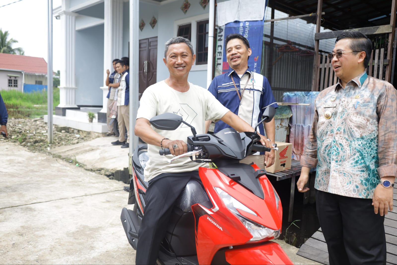 Wali Kota Ibnu Sina dan Wakil Wali Kota Arifin Noor, menyerahkan langsung Grand Prize undian pelanggan teladan berupa sepeda motor kepada pemenang, Senin (17/02).