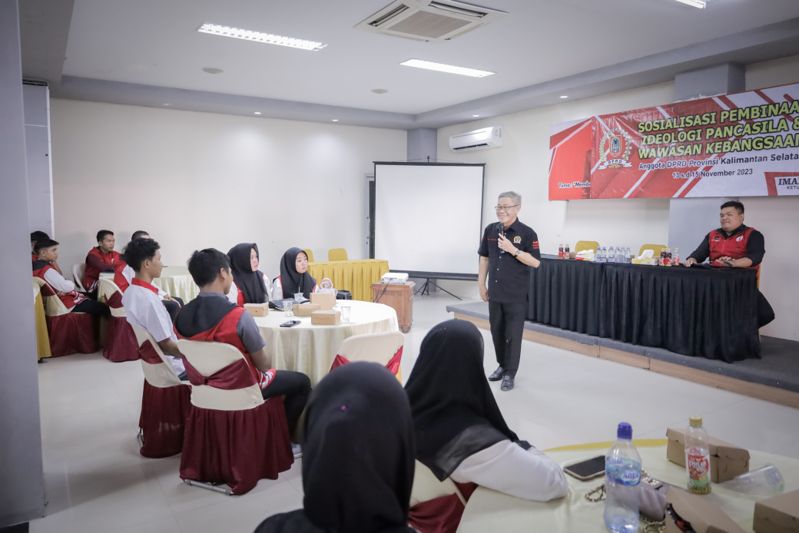 JURNALKALIMANTAN.COM, TANAH LAUT – Puluhan pemuda antusias mengikuti sosialisasi wawasan kebangsaan yang diselenggarakan oleh Ketua Komisi II Dewan Perwakilan Rakyat Daerah (DPRD) Provinsi Kalimantan Selatan (Kalsel), Imam Suprastowo di Pelaihari, Tanah Laut, Selasa, (14/11/2023).