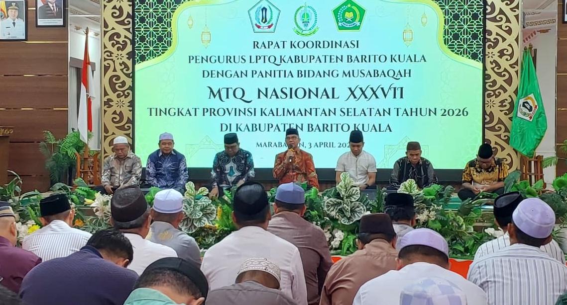 Komitmen tersebut disampaikan saat memimpin Rapat Koordinasi Pengurus LPTQ bersama panitia bidang musabaqah di Aula Selidah, Marabahan, Jumat (3/4).