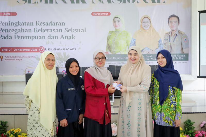 JURNALKALIMANTAN.COM, BANJAR – Ketua Komisi IV DPRD Kalimantan Selatan, Jihan Hanifha, menegaskan komitmennya untuk memperkuat perlindungan perempuan dan anak saat menghadiri Seminar Nasional bertema “Peningkatan Kesadaran Pencegahan Kekerasan Seksual pada Perempuan dan Anak” di Aula Bukit Bintang, Karang Intan, Kabupaten Banjar, Sabtu (29/11/2025).