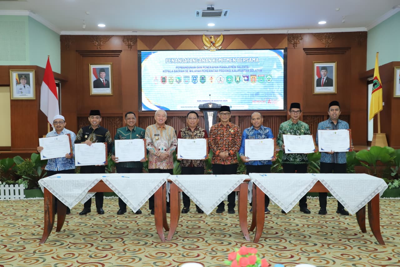 JURNALKALIMANTAN.COM, BANJARBARU – Gubernur Kalimantan Selatan, H. Muhidin, bersama bupati/walikota se-Kalsel resmi menandatangani Komitmen Bersama Penerapan Manajemen Talenta yang ditargetkan berjalan maksimal dalam dua bulan ke depan. Penandatanganan dilakukan bersama Kepala Badan Kepegawaian Nasional (BKN) Prof. Zudan Arif Fakrulloh di Aula KH Idham Khalid, Kantor Gubernur Kalsel, Kamis (28/8/2025).