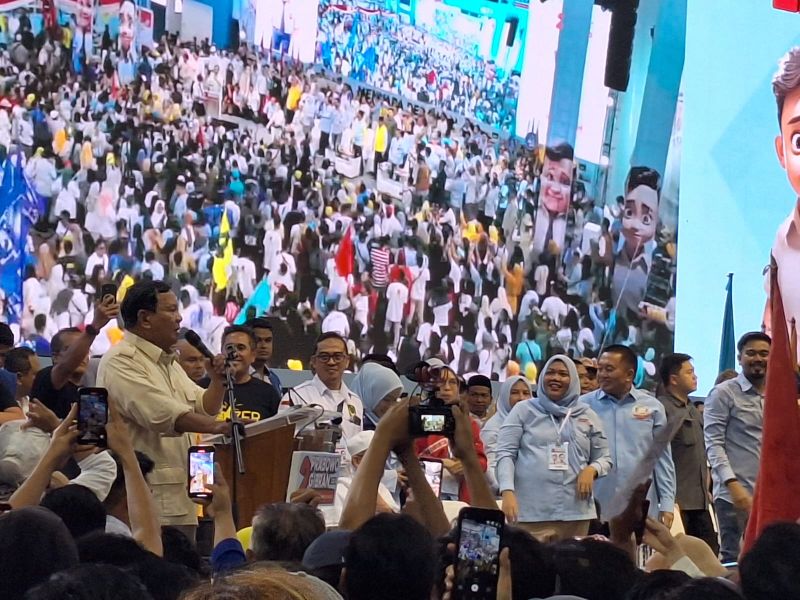 “Kita harus bersatu membawa perubahan nyata bagi bangsa ini. Kita ingin rakyat Indonesia hidup layak, berpenghasilan layak, menghapus kemiskinan, dan membuka peluang kerja sebanyak-banyaknya,” harap Prabowo disambut aplaus.