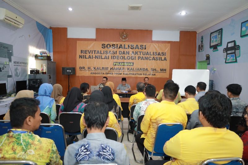 JURNALKALIMANTAN.COM, BARITO KUALA – Dibuka oleh Kepala Dinas Kominfo Kabupaten Barito Kuala, Hery Sasmita, acara Sosialiasi Revitalisasi dan Aktualisasi Nilai-nilai Ideologi Pancasila dilaksanakan oleh Anggota DPRD Provinsi Kalimantan Selatan (Kalsel), Dr. H. Karlie Hanafi Kalianda, SH., MH, di ruang Media Center Dinas Komunikasi dan Informatika (Diskominfo) Kab. Barito Kuala, pada Kamis (4/7) pagi.