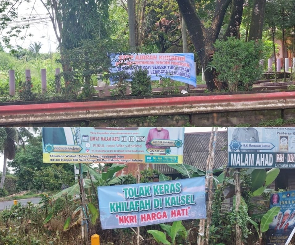 Berdasarkan pantauan lapangan, spanduk penolakan ajaran khilafah terlihat di sejumlah titik seperti di pertigaan Jalan Banjarmasin–Marabahan dan H.M. Yunus Kecamatan Rantau Badauh, Jalan Bahaudin Musa dekat Jembatan Rumpiang, serta beberapa ruas jalan lainnya.