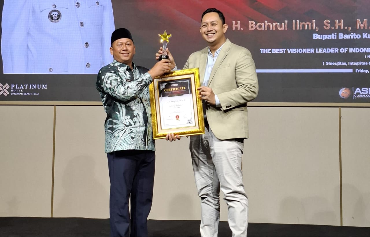 Penghargaan tersebut diserahkan langsung oleh CEO Seven Media Asia, Eka Arismana Wira Dharma, sebagai bentuk apresiasi atas kepemimpinan visioner dan inovatif yang ditunjukkan H. Bahrul Ilmi selama memimpin Barito Kuala.