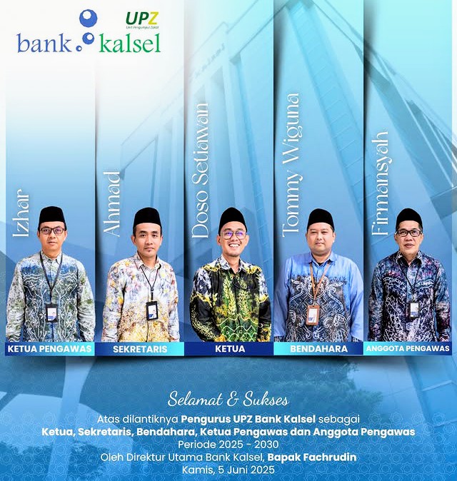 Adapun kepengurusan yang baru tersebut yakni, Ketua, Doso Setiawan, Sekretaris, Ahmad, Bendahara, Tommy Wiguna, kemudian Ketua Pengawas, Izhar dan anggotanya, Firmansyah. Dilantik langsung oleh Direktur Utama Bank Kalsel sekaligus Pembina UPZ Bank Kalsel, Fachrudin.