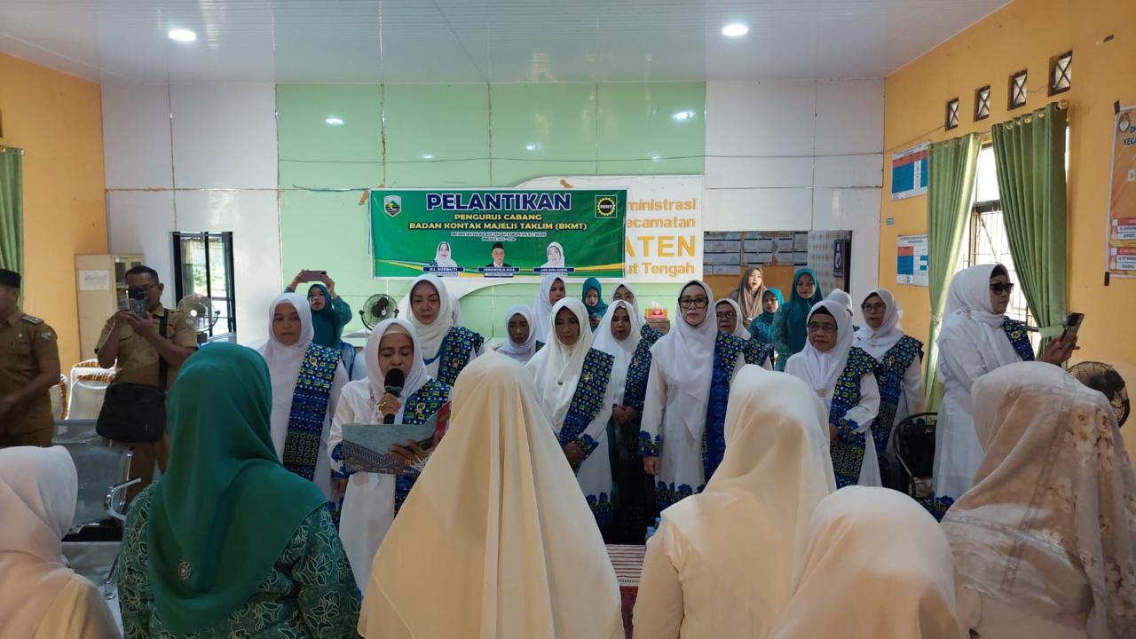 Pelantikan berlangsung di Aula Kantor Kecamatan Pulau Laut Tengah dan dihadiri Plt. Camat Pulau Laut Tengah Ibrahim, S.Sos, unsur Forkopimca, serta seluruh jajaran pengurus BKMT.