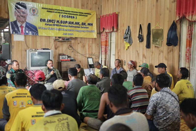 JURNALKALIMANTAN.COM, HULU SUNGAI UTARA – Ketua DPRD Kalsel H. Supian HK, Sosialisasikan Peraturan Daerah nomor 2 tahun 2017 tentang rencana perlindungan dan pengelolaan lingkungan di desa Teluk Mesjid Kec. Danau Panggang, Hulu Sungai Utara pada Selasa (2/7/2024) lalu.