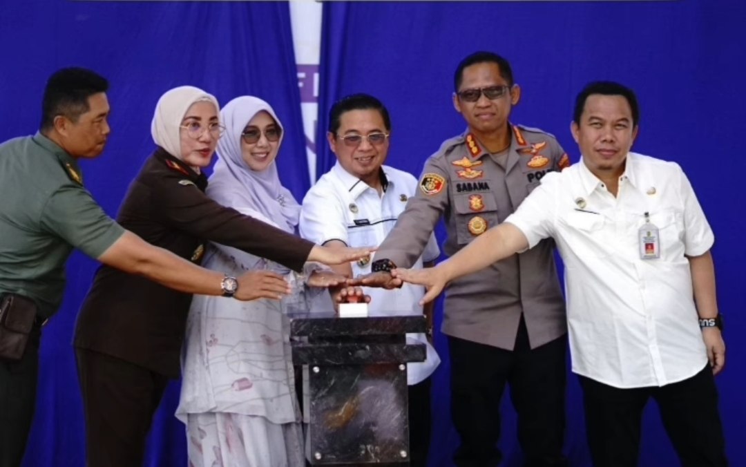 Wali Kota (tengah) bersama Ketua TP PKK dan Forkopimda melakukan Kick Off