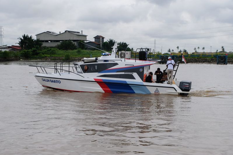“Hari ini kami meninjau langsung kondisi alur pelayaran di muara Sungai Barito. Dari titik kapal ini jaraknya kurang lebih 15 kilometer,” ujarnya.