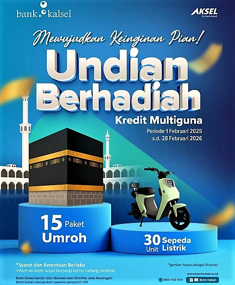 JURNALKALIMANTAN.COM, BANJARMASIN – Ingin beribadah ke Tanah Suci secara gratis dan memiliki kendaraan ramah lingkungan yang gratis. Anda bisa mendapatkan kesempatan luar biasa untuk memenangkan 15 Paket Umroh atau 30 Unit Sepeda Listrik dengan cara yang mudah dan menguntungkan!