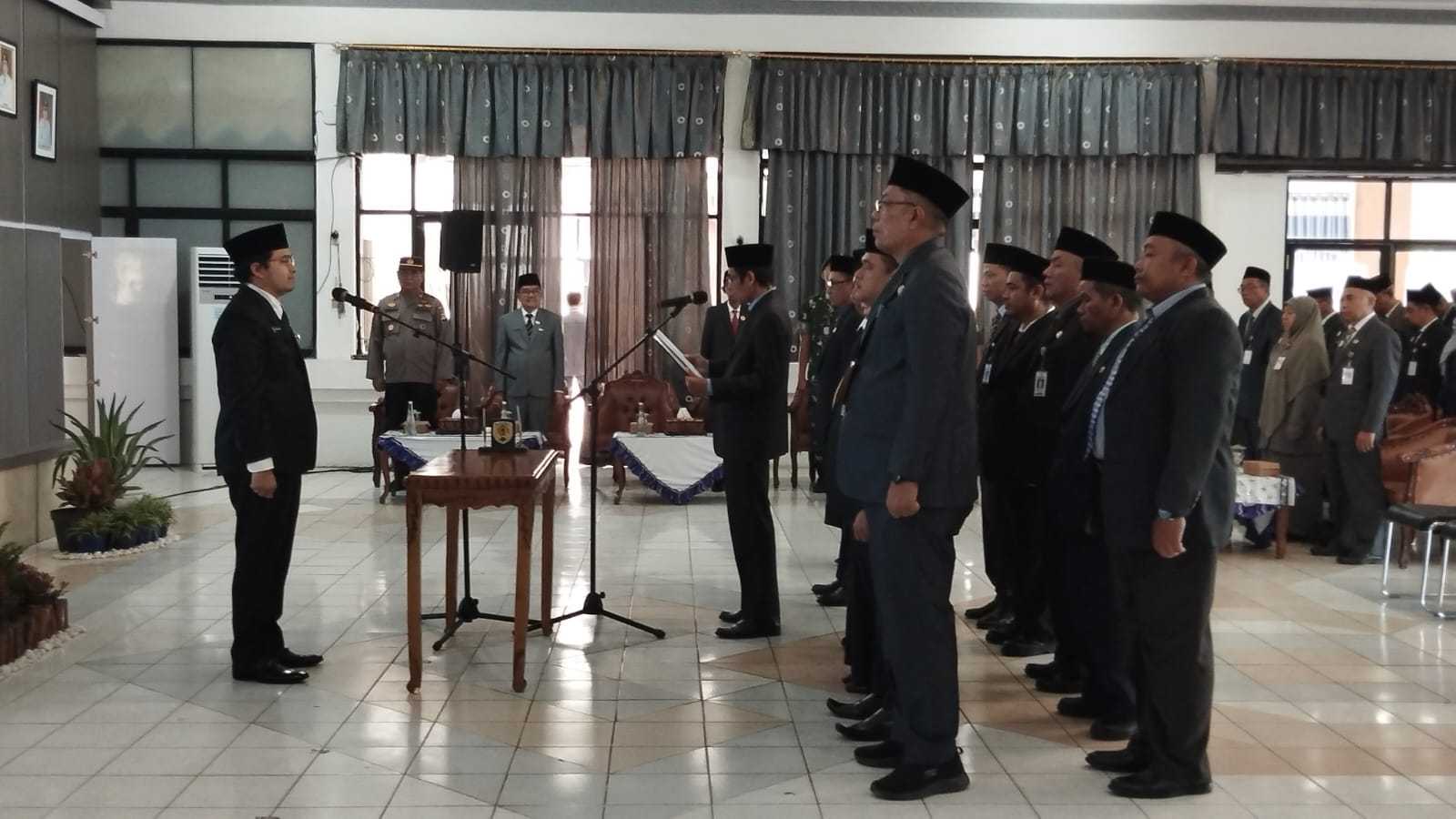 Usai melantik, Bupati Aulia Oktafiandi dalam sambutannya memberikan dua pesan.