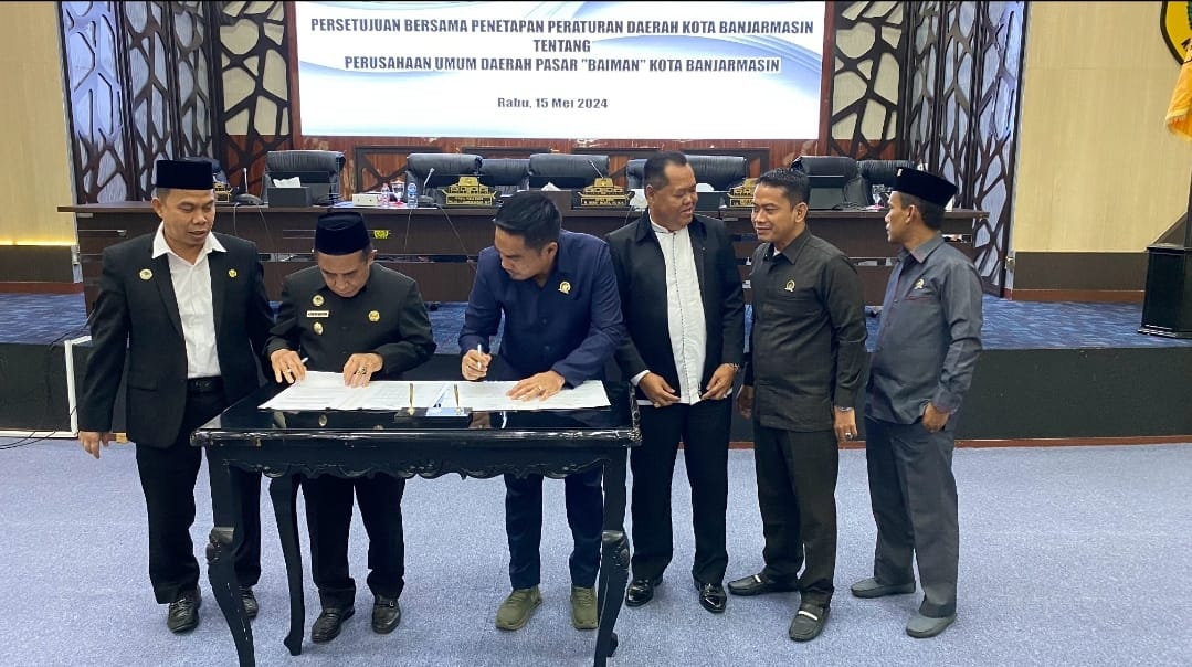 RAPAT PANSUS: Ketua Pansus, Afrizaldi memimpin rapat lanjutan pembahasan Rancangan Peraturan Daerah (Raperda) Penyelenggaraan Transportasi bersama anggota Pansus dan Dishub Banjarmasin.SILATURAHMI: Ketua DPRD Banjarmasin H Harry Wijaya didampingi Sekwan DPRD Iwan Ristianto menerima silaturahmi dari Ketua Pengadilan Negeri Kota Banjarmasin, Agus Akhyudi.HADIRI PLENO: Sekretaris DPRD Banjarmasin, Iwan Ristianto bersama Kabag Umum DPRD, Ashadi Himawan menghadiri Rapat Pleno Penetapan Perolehan Kursi Partai Politik Peserta Pemilu dan Penetapan Calon Terpilih Anggota DPRD Banjarmasin.AUDIENSI: Ketua DPRD Banjarmasin H Harry Wijaya didampingi Kabag Umum DPRD, Ashadi Himawan melaksanakan audiensi bersama Mahasiswa dari Himpunan Mahasiswa Islam (HMI) Banjarmasin.PARIPURNA: DPRD Banjarmasin menggelar Rapat Paripurna Tingkat II perihal Persetujuan Bersama Penetapan Peraturan Daerah Kota Banjarmasin tentang Perusahaan Umun Daerah Pasar Baiman Banjarmasin.PENANDATANGANAN: Ketua DPRD Banjarmasin H Harry Wijaya menandatangani Persetujuan Bersama Penetapan Peraturan Daerah Kota Banjarmasin tentang Perusahaan Umun Daerah Pasar Baiman Banjarmasin.8. RDP: Wakil Ketua Komisi III DPRD Banjarmasin, Afrizaldi memimpin Rapat Dengar Pendapat (RDP) bersama Dinas PUPR terkait percepatan pembangunan infrastruktur serta optimalisasi infrastruktur di Kota Banjarmasin.
