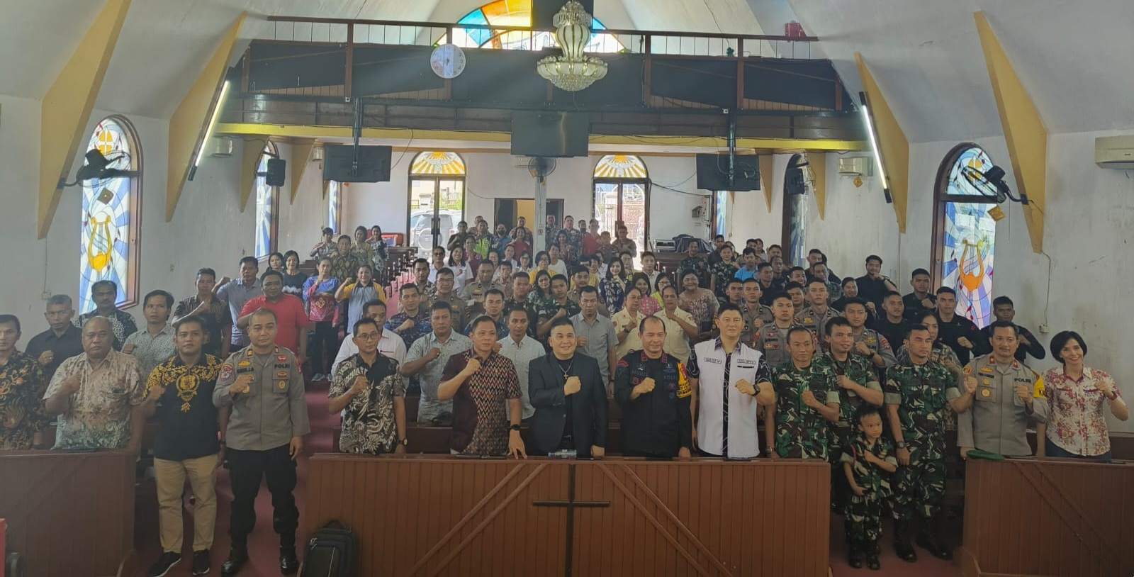JURNALKALIMANTAN.COM, BANJARMASIN – Guna mewujudkan Pemilu 2024 yang damai, Kepolisian Daerah Kalimantan Selatan melalui Pembinaan Rohani Kristen menggelar ibadah bersama Polri, TNI, dan instansi terkait, di Gereja Kalimantan Evangelis Eben Ezer Banjarmasin, Jumat (1/12/2023).