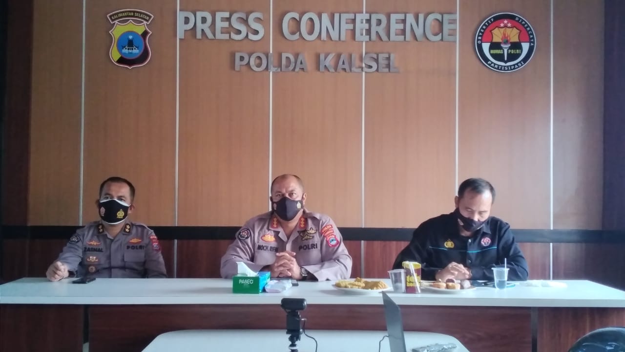 Kabid Humas Polda Kalsel, Kombes Pol M Rifa'i (tengah) berikan keterangan pada awak media