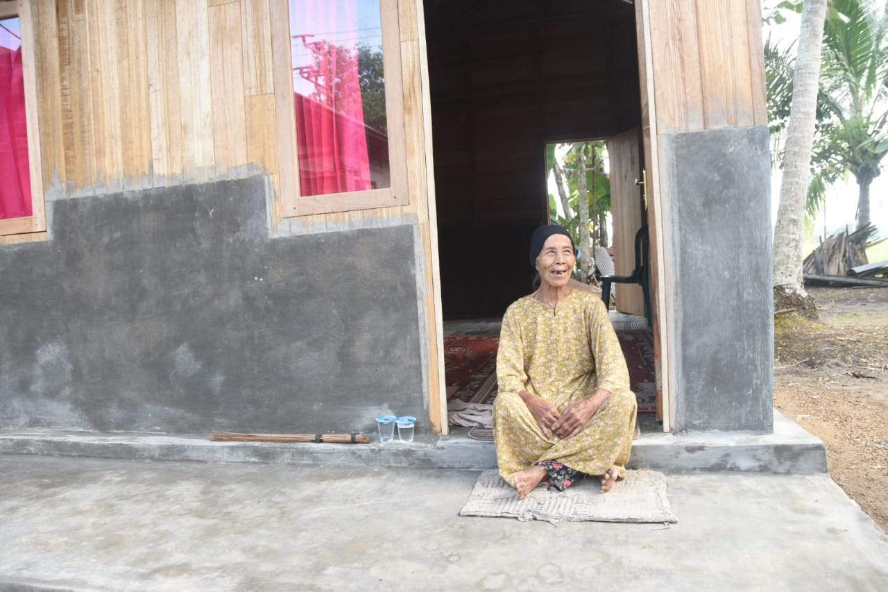 Salah satu wujud nyata dari manfaat program ini adalah terwujudnya rumah layak huni bagi nenek Kurba (81) seorang warga lansia di Kecamatan Haruyan.