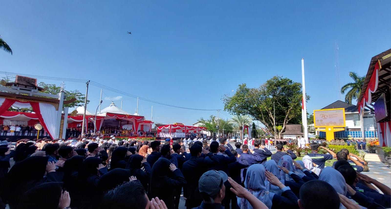 Peringatan tahun ini terlihat sangat unik karena para pejabat tinggi pratama, dan jajaran Forum Koordinasi Pimpinan Daerah (Forkopimda) beserta jajaran, mengenakan pakaian adat dari berbagai derah.