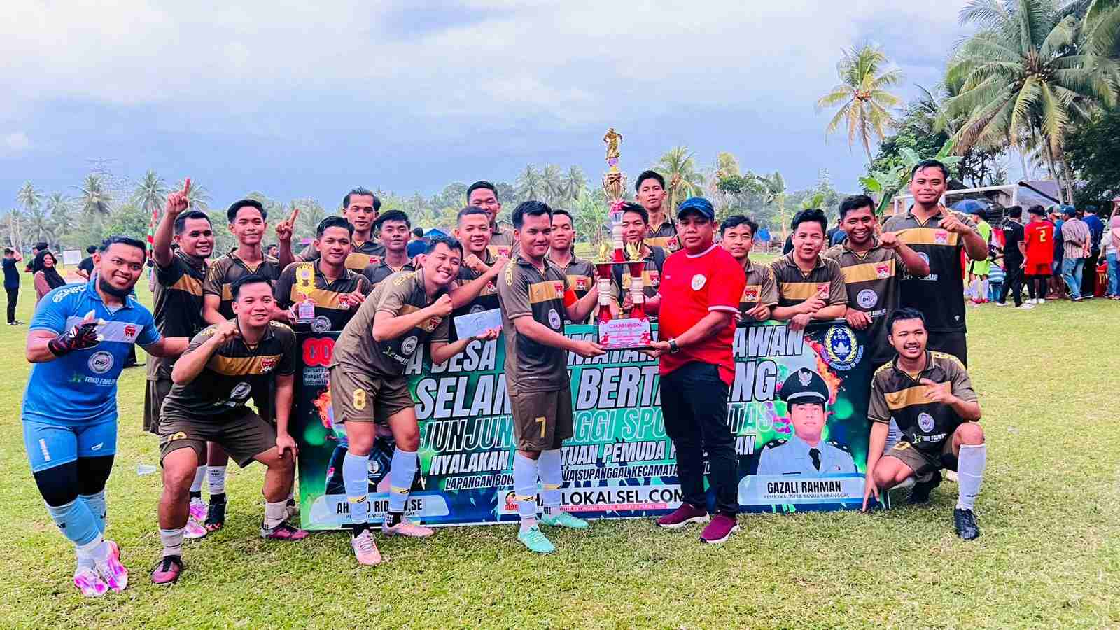 Atmosfer kompetisi terasa begitu panas, dengan ratusan pasang mata menyaksikan jalannya laga penentuan juara, bertempat di Lapangan Desa Banua Supanggal, Kecamatan Pandawan Kabupaten Hulu Sungai Tengah (HST), Rabu (10/9/2025).