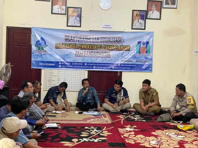 JURNALKALIMANTAN.COM, BANJARMASIN – Guna meningkatkan pelayanan ke pelanggan, PT Air Minum (PAM) Bandarmasih bersama Forum Pelanggan Air Minum (Forpam) Kalsel, didampingi Yayasan Lembaga Konsumen Intan Kalimantan (YLKIK), melakukan silaturahmi dan sosisalisasi kepada warga, berlangsung di Kelurahan Pekapuran Laut, Kecamatan Banjarmasin Tengah, Kota Banjarmasin, Selasa (22/8/2023).