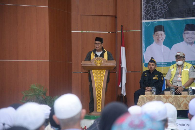 Dihadapan jamaah haji, Paman Birin pun menyampaikan rasa syukur dan gembira semua jamaah haji Kloter 1 Kabupaten Banjar berangkat dan pulang dengan jumlah yang sama.