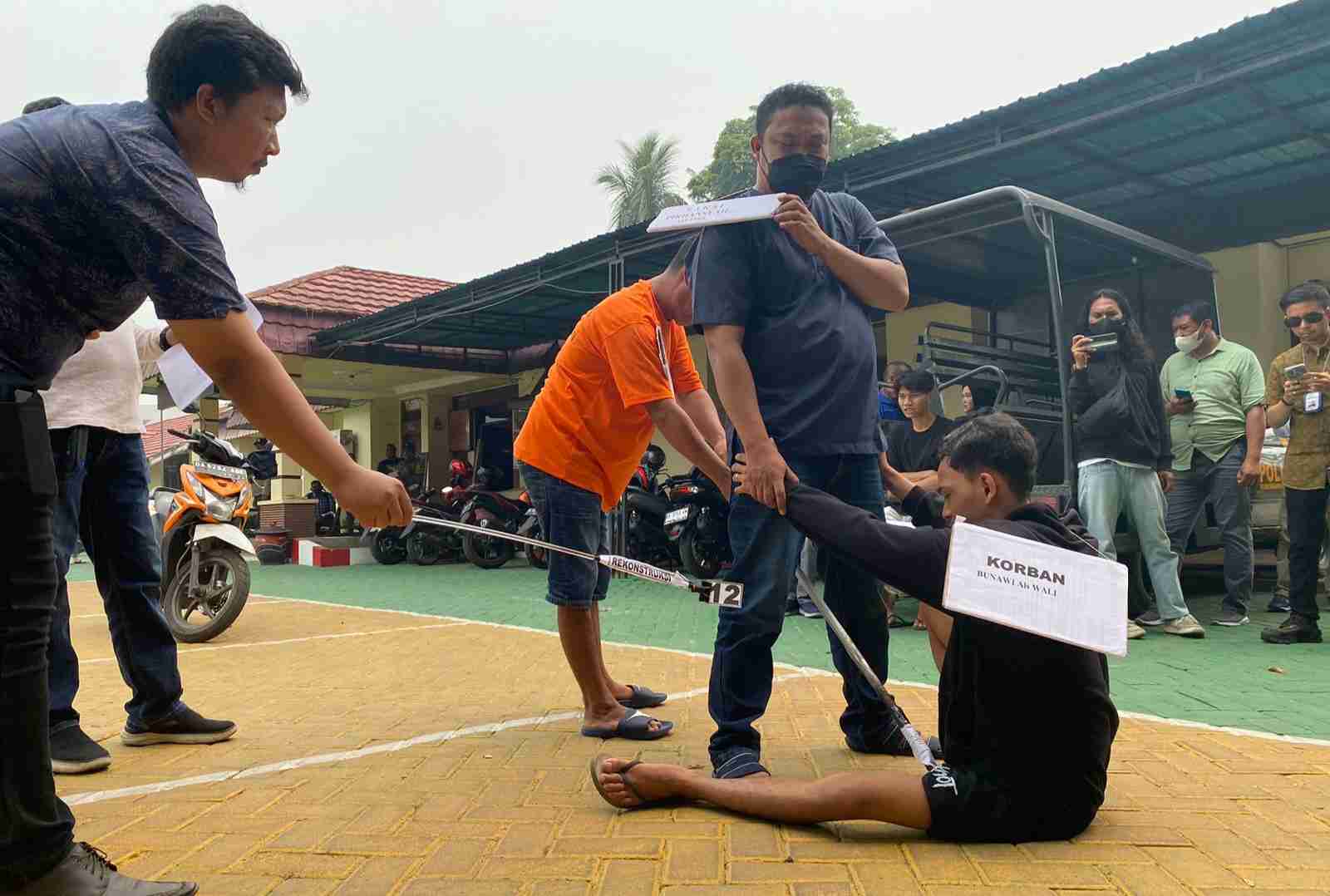 Rekonstruksi kasus yang menewaskan Bunawi itu dilangsungkan di Halaman Mapolsek, Rabu (4/10) pagi.