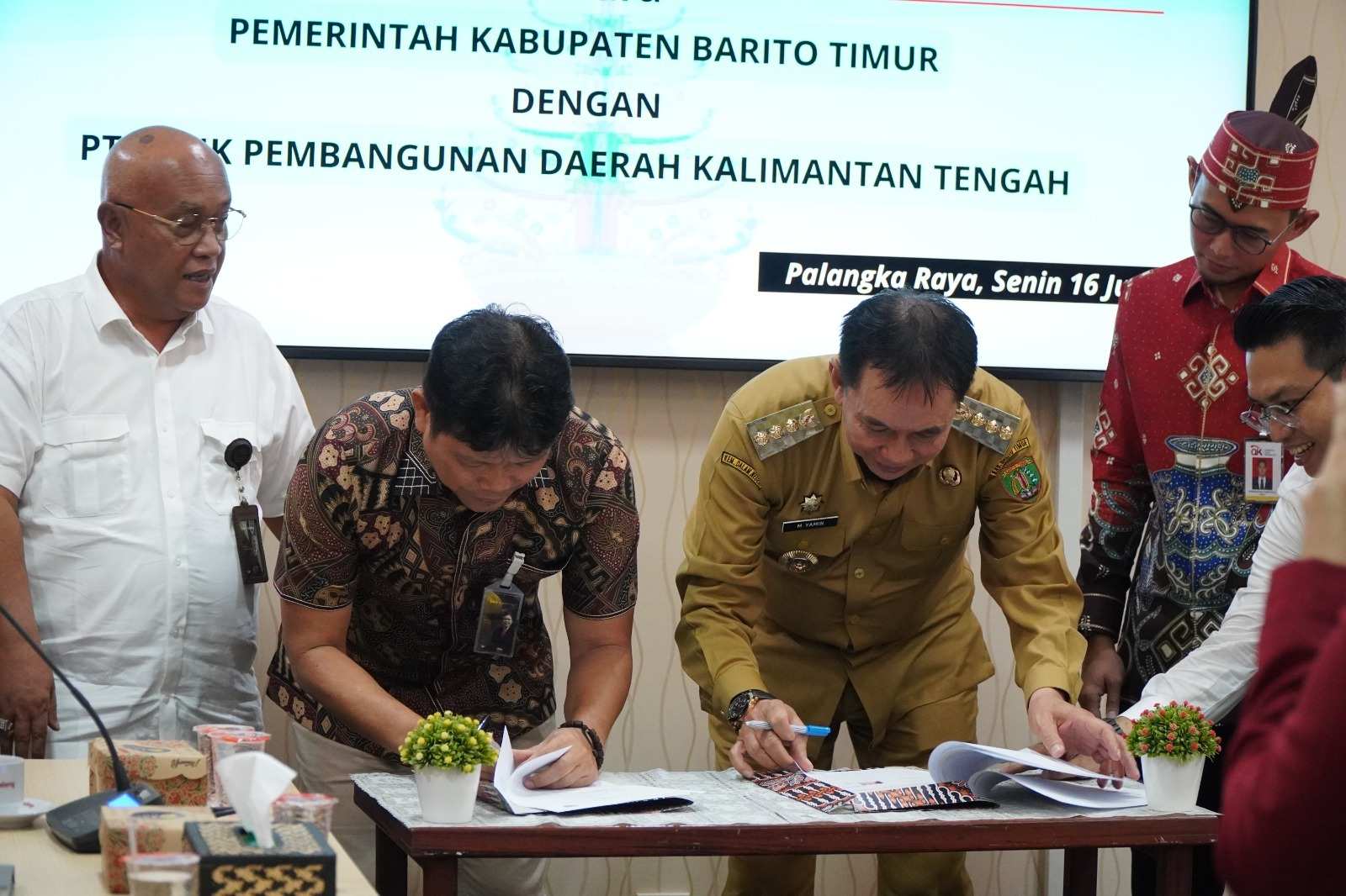 Bupati Bartim (kanan) menandatangani kerjasama dengan Bank Kalteng. (Foto : Ist)
