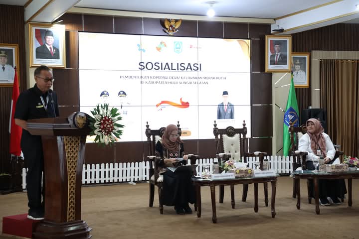 JURNALKALIMANTAN.COM, HULU SUNGAI SELATAN – Pemkab Hulu Sungai Selatan (HSS) Melalui Dinas Tenaga Kerja, Koperasi, Usaha Kecil Menengah, dan Perindustrian, mensosialisasikan pembentukan Koperasi Desa/Kelurahan Merah Putih, rabu (14/5/25).