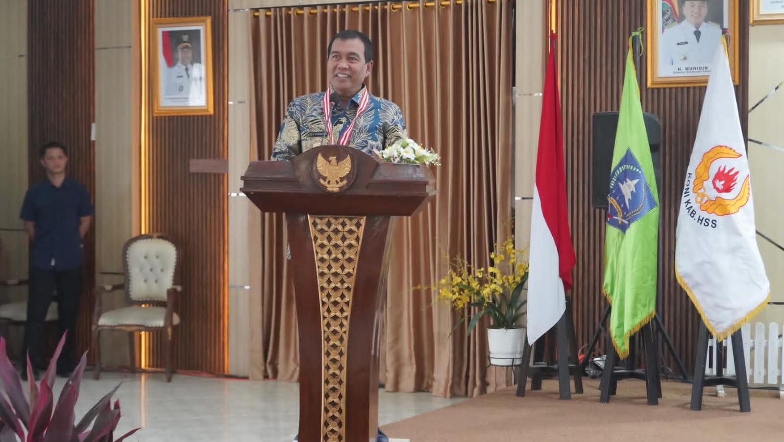 Kegiatan ini dihadiri Bupati HSS H. Syafrudin Noor, Wakil Bupati H. Suriani, perwakilan KONI Provinsi Kalimantan Selatan yang diwakili Sekretaris KONI Kalsel, serta perwakilan KONI Kabupaten Tapin, Hulu Sungai Tengah dan Hulu Sungai Utara.