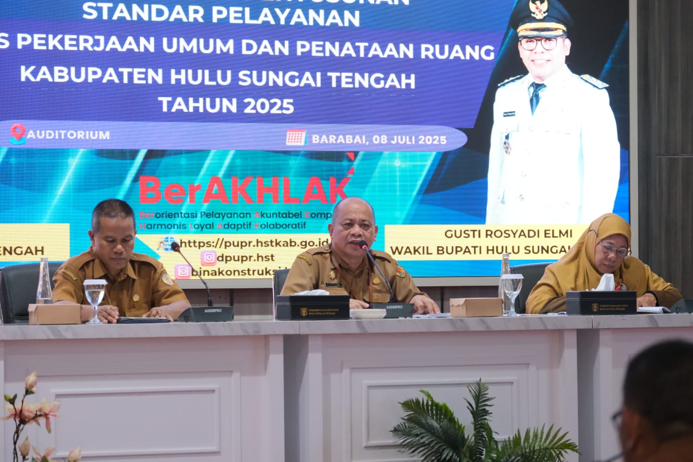 JURNALKALIMANTAN.COM, HULU SUNGAI TENGAH – Pemerintah Kabupaten Hulu Sungai Tengah (HST) melalui Dinas Pekerjaan Umum dan Penataan Ruang (PUPR) melaksanakan Forum Konsultasi Publik terkait penyusunan Standar Pelayanan Publik di Auditorium Bupati HST, Selasa (8/7/2025).