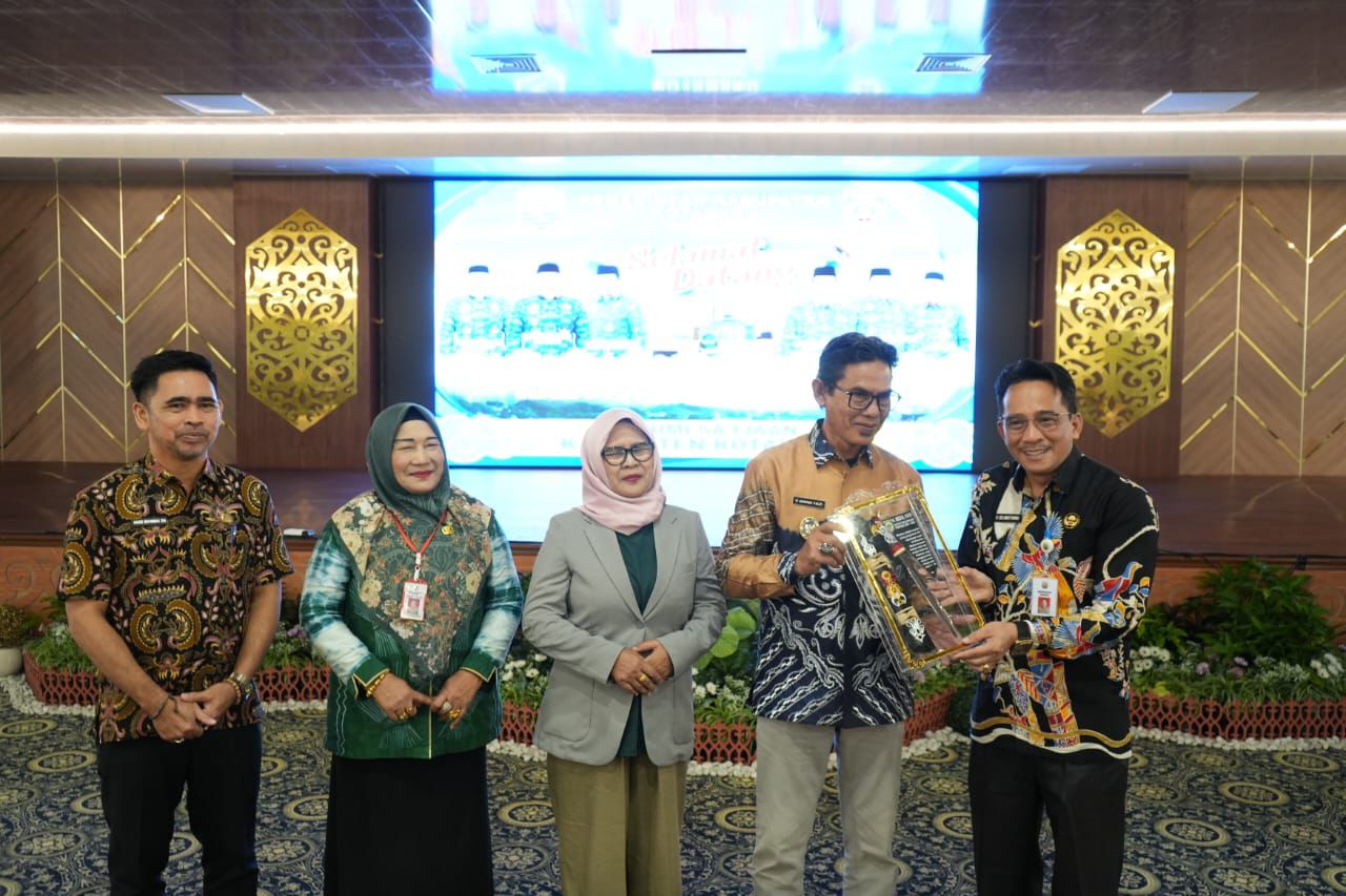 Rombongan KORPRI Balangan disambut langsung oleh Asisten Administrasi Umum Sekretariat Daerah Kabupaten Kotabaru, H. Selamat Riyadi, S.Pd., M.Ed., didampingi Plt. Kepala BKPSDM Kotabaru, Anang Muhammad Zen, S.T., M.T., CGCAE.