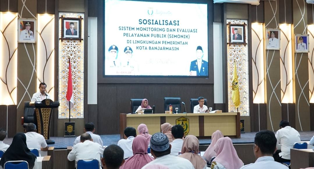 JURNALKALIMANTAN.COM,BANJARMASIN – Pemerintah Kota Banjarmasin melalui Bagian Organisasi, menggelar Sosialisasi Sistem Pemantauan dan Evaluasi Kinerja Pelayanan Publik dalam Aplikasi SIMONIK, bertempat di Aula Kayuh Baimbai Balaikota Banjarmasin, Rabu (8/11/2023).