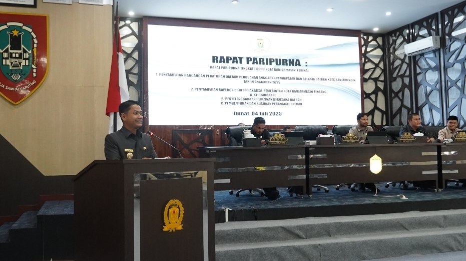 JURNALKALIMANTAN.COM, BANJARMASIN – Pemerintah Kota Banjarmasin resmi menyampaikan Rancangan Peraturan Daerah tentang Perubahan Anggaran Pendapatan dan Belanja Daerah (P-APBD) Tahun Anggaran 2025, dalam Rapat Paripurna Tingkat I DPRD Kota Banjarmasin, di ruang rapat utama gedung dewan, Jumat (4/7).