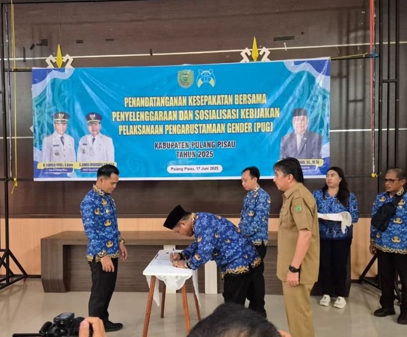 JURNALKALIMANTAN.COM, PULANG PISAU – Pemkab Pulang Pisau melalui DP3AP2KB melakukan penandatanganan Kesepakatan Bersama Penyelenggaraan dan Sosialisasi Kebijakan Pelaksanaan Pengarusutamaan Gender (PUG) Tingkat Kabupaten Pulang Pisau Tahun 2025, di Aula Dinkes setempat, Selasa (17/6/2025).