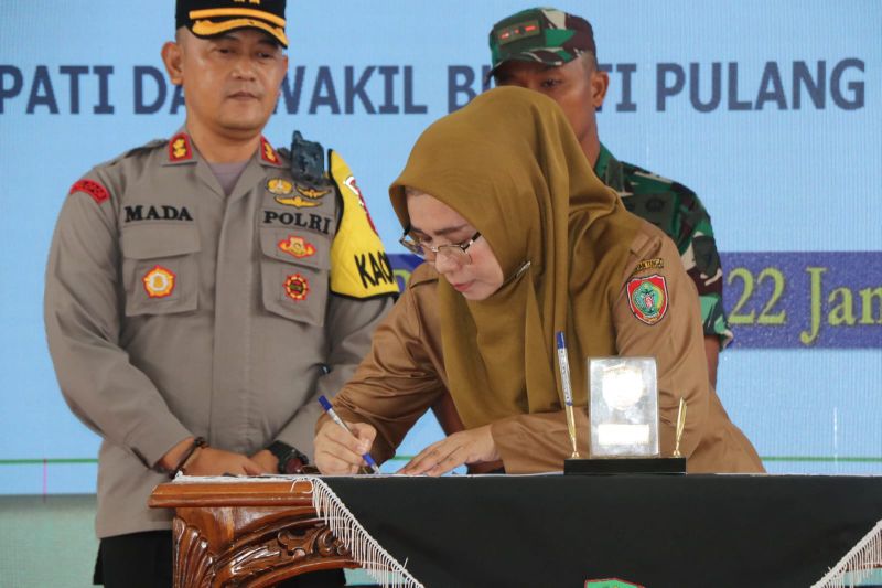 JURNALKALIMANTAN.COM, PULANG PISAU – Penjabat (Pj) Bupati Hj. Nunu Andriani melakukan penandatanganan Naskah Perjanjian Hibah Daerah (NPHD), untuk pengamanan Pemilihan Bupati dan Wakil Bupati Pulang Pisau Tahun 2024.