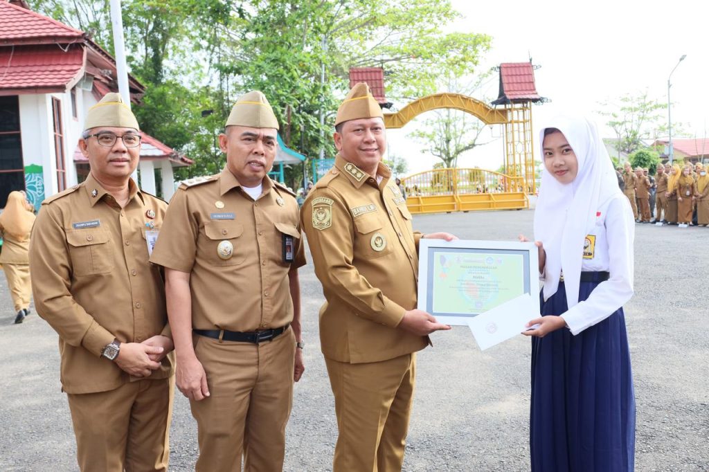 Sebagai penutup rangkaian kegiatan apel, Bupati Barito Kuala, H. Bahrul Ilmi, menyerahkan piagam penghargaan kepada siswa-siswi berprestasi yang berhasil meraih juara dalam ajang Olimpiade Sains Nasional (OSN) dan Olimpiade Olahraga Siswa Nasional (O2SN) tingkat Provinsi Kalimantan Selatan tahun 2025.