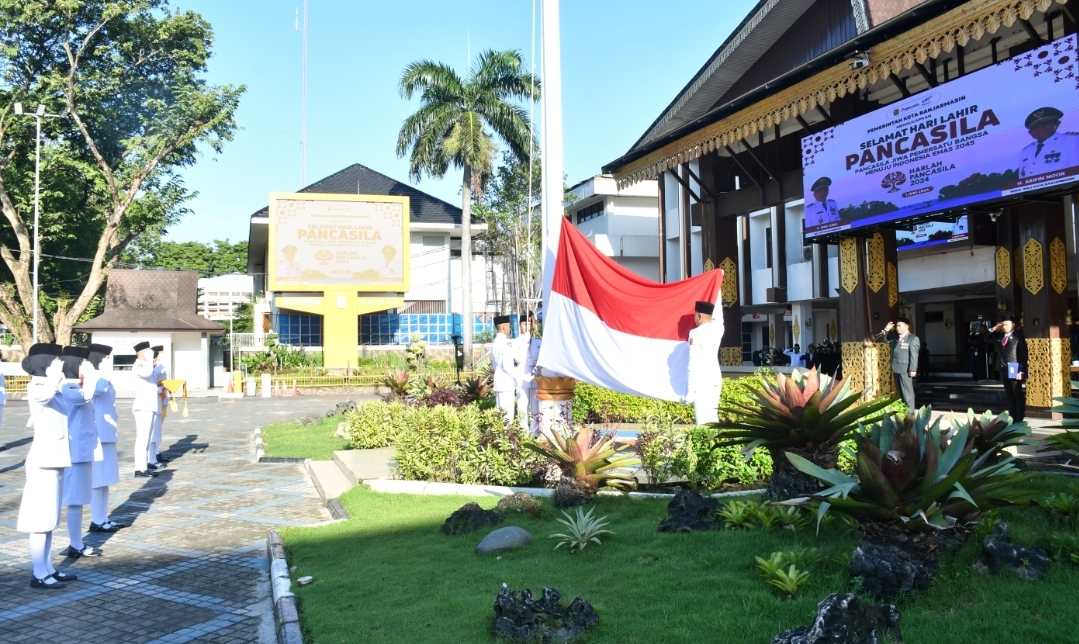 JURNALKALIMANTAN.COM,BANJARMASIN – Pemerintah Kota Banjarmasin meenggelar Upacara Peringatan Hari Lahir Pancasila dengan tema “Pancasila Jiwa Pemersatu Bangsa Menuju Indonesia Emas 2045”, di Halaman Balaikota Banjarmasin, Sabtu (01/06).