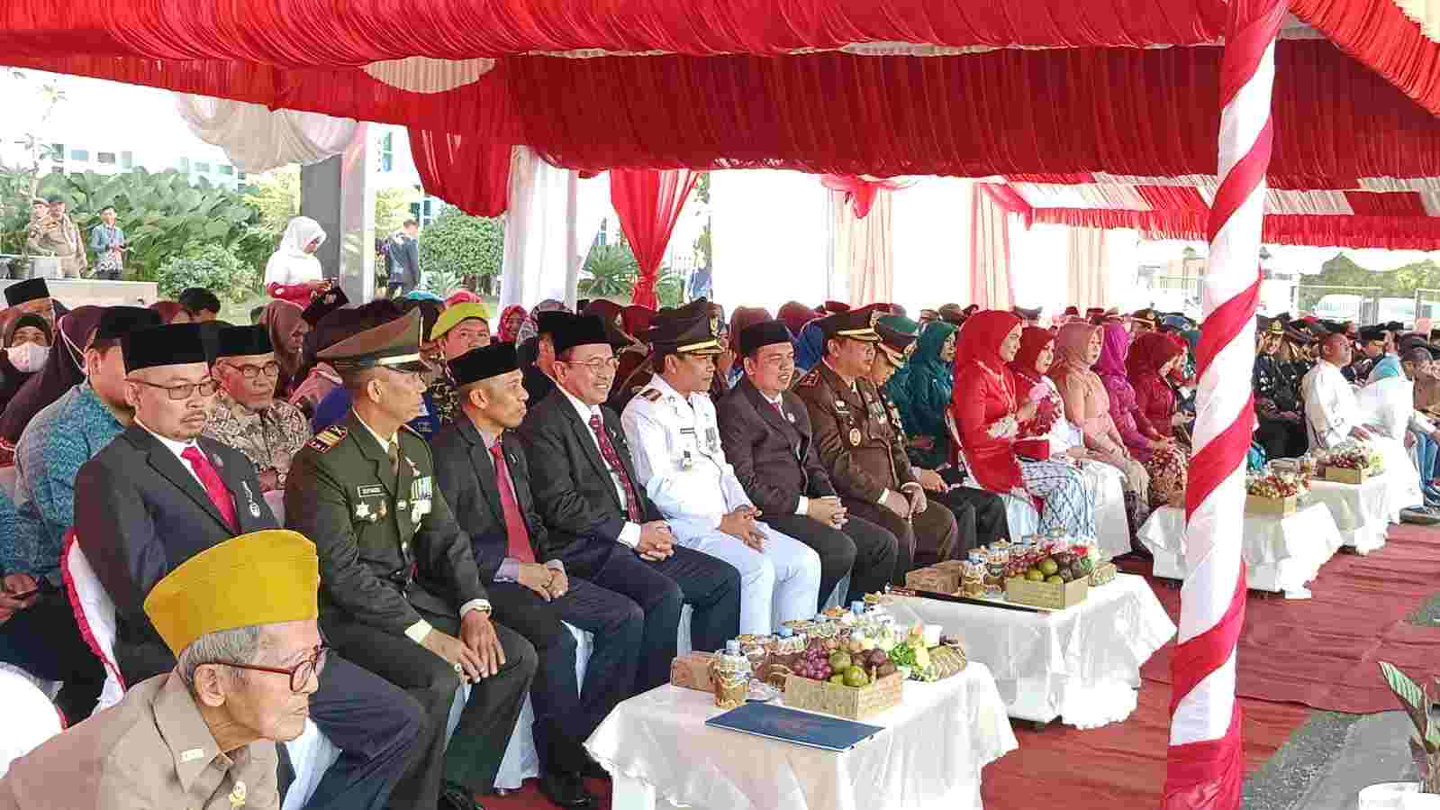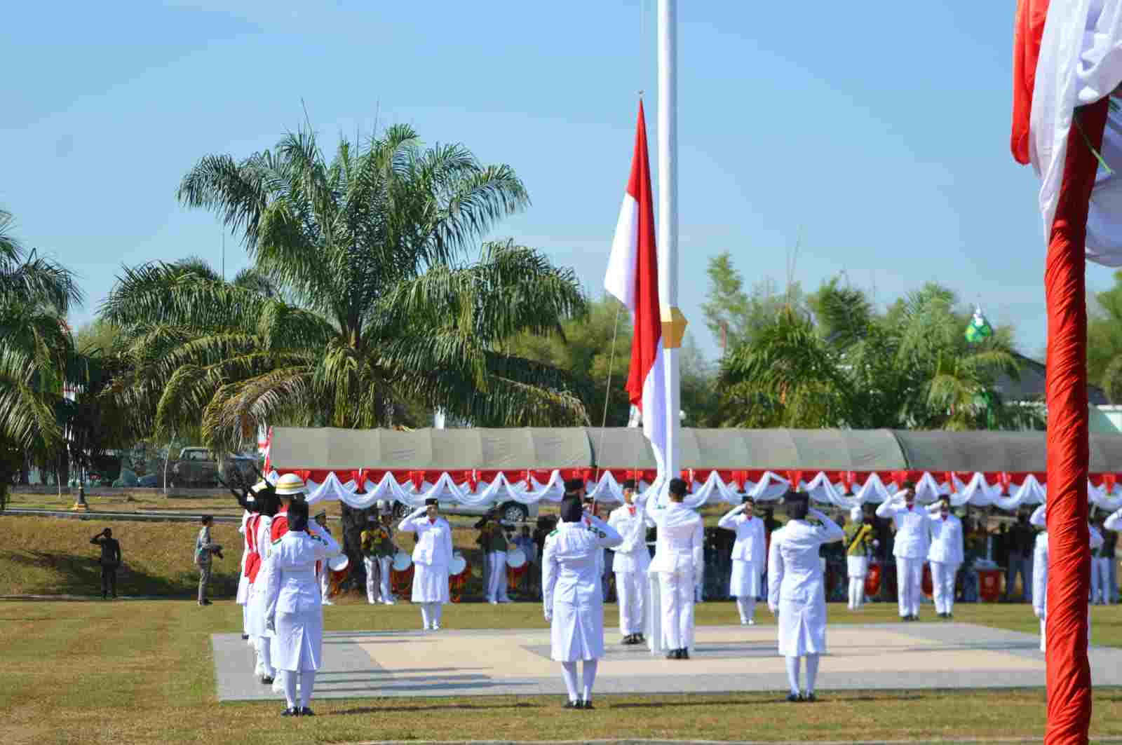 Momen peringatan proklamasi kemerdekaan yang digelar di halaman kantor bupati ini turut diikuti ratusan warga dari berbagai penjuru Bumi Sanggam.