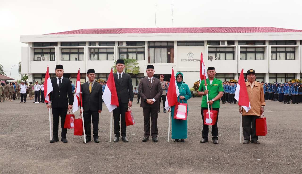 JURNALKALIMANTAN.COM, BARITO KUALA – Pemerintah Kabupaten Barito Kuala (Batola) melalukan penyerahan simbolis bendera merah putih kepada perwakilan organisasi wanita, kecamatan, organisasi pemuda, dan organisasi masyarakat, pada kegiatan upacara, di halaman Kantor Bupati, Senin (3/6/2024).