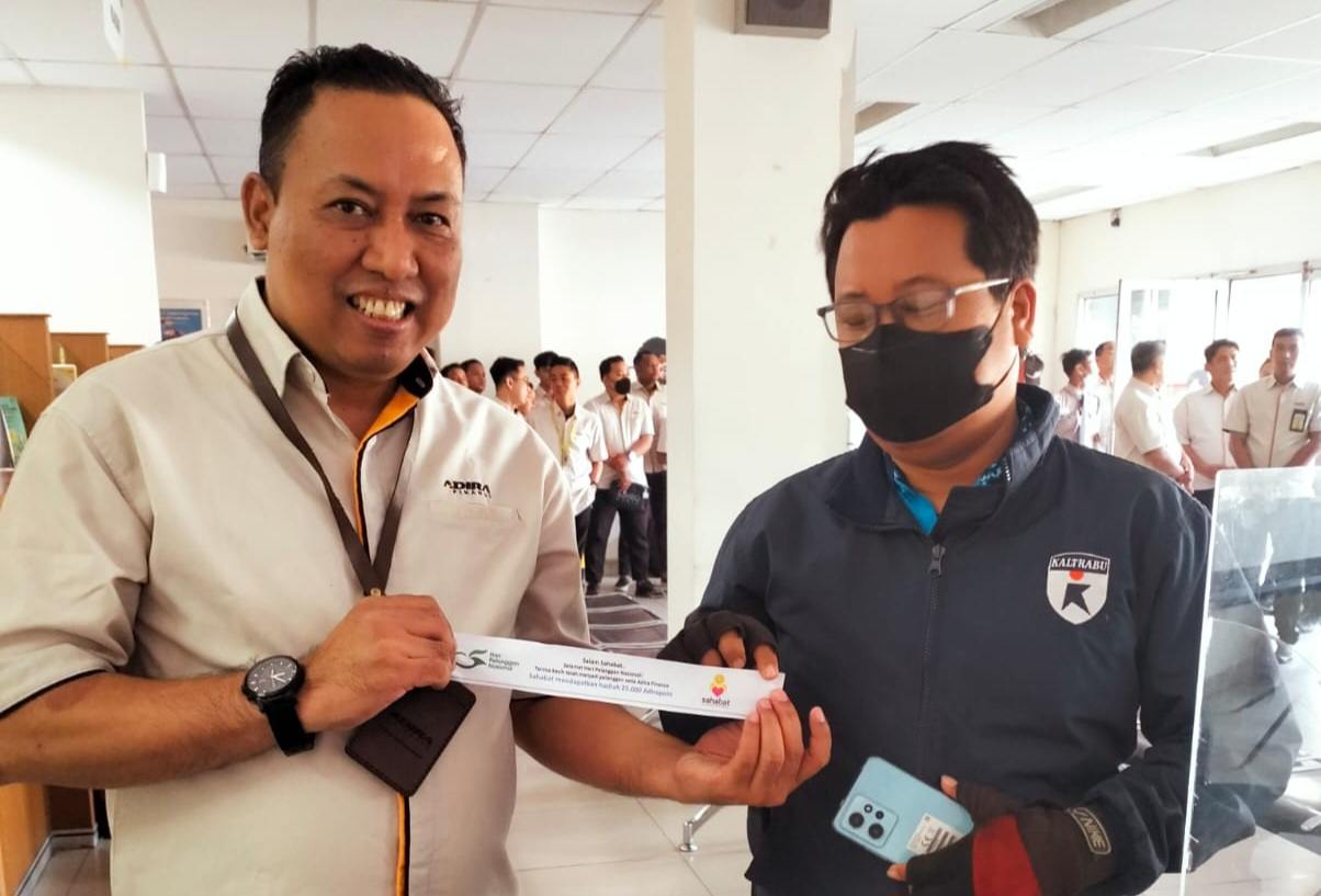 “Hari ini dan besok pelanggan kita yang datang ke kantor kita untuk melakukan pinjaman dana tunai dengan jaminan BPKB motor, kita kasih cashback Rp500 ribu, dan BPKB mobil itu Rp1 juta langsung,” ungkap Head of Branch Sales Sevice Distribution Adira Finance Cabang Banjarmasin Winarno, di Jalan A. Yani Kilomiter 5,5 Banjarmasin, Senin (4/9/2023).