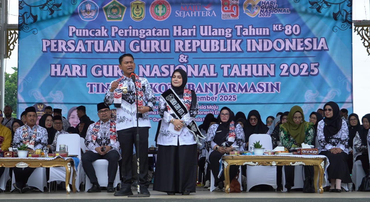 JURNALKALIMANTAN.COM, BANJARMASIN – Pemerintah Kota Banjarmasin melalui Dinas Pendidikan, menggelar puncak peringatan Hari Ulang Tahun (HUT) ke-80 Persatuan Guru Republik Indonesia (PGRI) sekaligus Hari Guru Nasional (HGN) Tahun 2025, berlangsung di halaman Balai Kota, Sabtu (13/12), diikuti ribuan guru dari berbagai jenjang pendidikan.