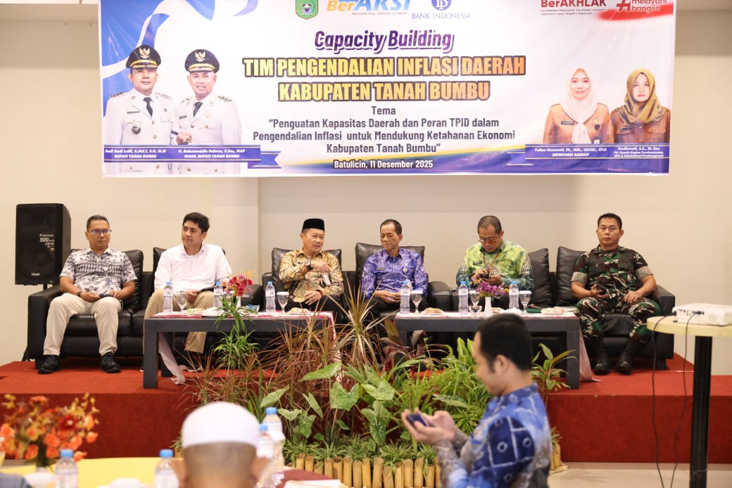 JURNALKALIMANTAN.COM, TANAH BUMBU – Pemerintah Kabupaten Tanah Bumbu melalui Bagian Perekonomian, Sumber Daya Alam, dan Administrasi Pembangunan Sekretariat Daerah menggelar kegiatan Capacity Building Tim Pengendalian Inflasi Daerah (TPID) dengan tema “Penguatan Kapasitas Daerah dan Peran TPID dalam Pengendalian Inflasi”. Kegiatan tersebut berlangsung di Hotel Ebony Batulicin, Kamis (11/12/2025).