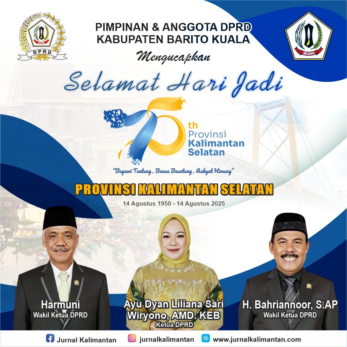 Pimpinan dan Anggota DPRD Barito Kuala Ucapkan Selamat Hari Jadi Provinsi Kalimantan Selatan Ke – 75