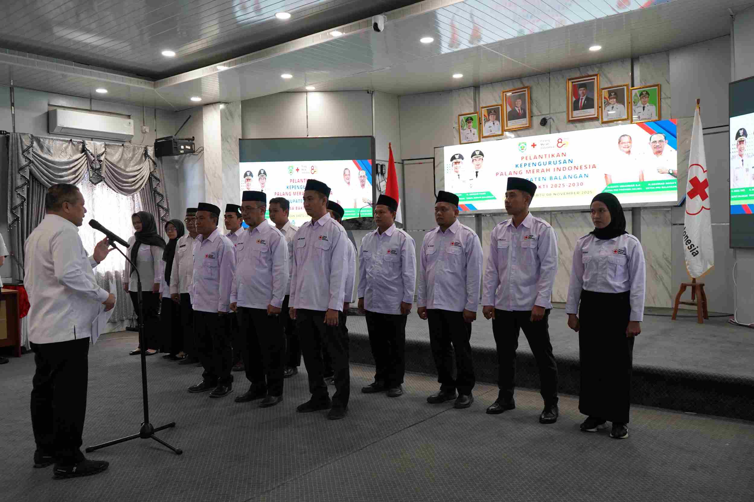 Pelantikan kepengurusan PMI Kabupaten Balangan periode 2025-2030 Sabtu (8/11/2025). - (Foto : Mc.Balangan)