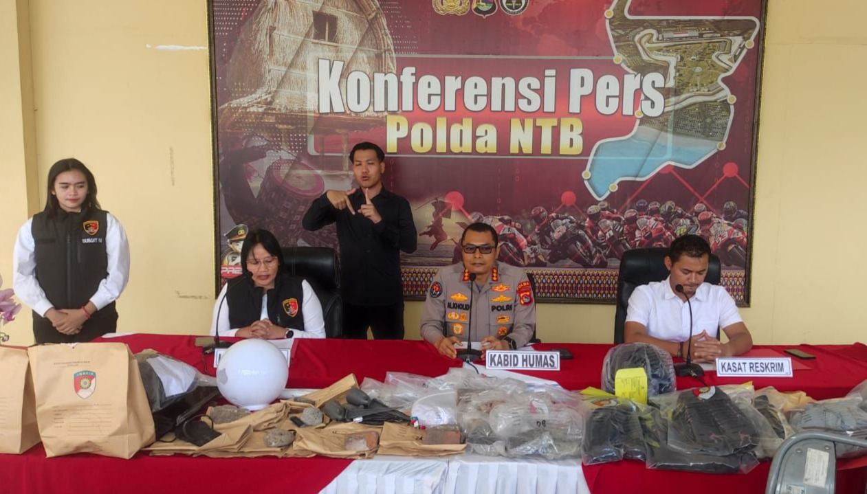 Sementara itu, tersangka dewasa kini telah ditahan di Polda NTB dan Polresta Mataram. Barang bukti yang berhasil diamankan antara lain pecahan beton, batu, kaca, barang elektronik, serta pakaian yang dikenakan saat kejadian.