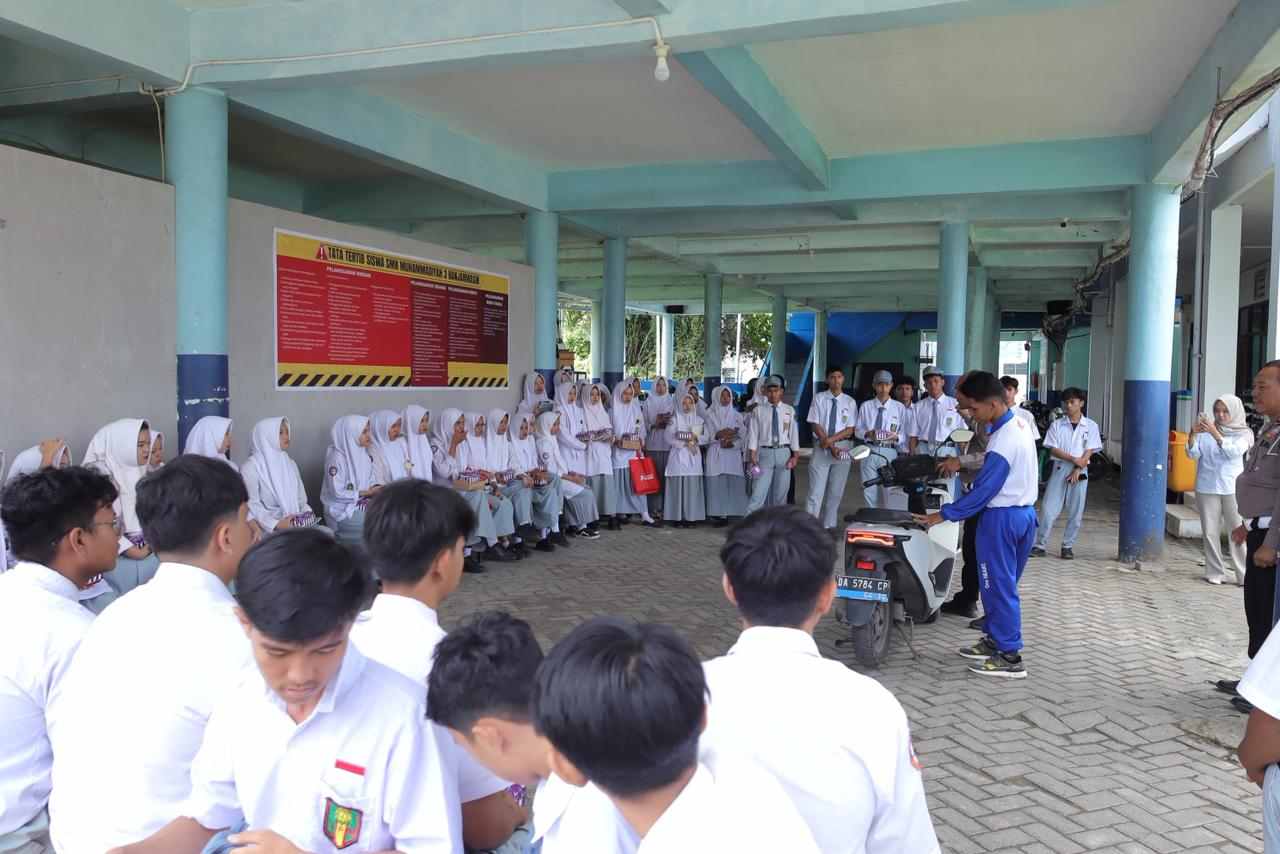 Puluhan siswa dan siswi SMK Muhammadiyah 3 Banjarmasin mengikuti kegiatan ini dengan antusias. Mayoritas peserta telah aktif menggunakan sepeda motor dalam aktivitas sehari-hari, baik sebagai pengendara maupun penumpang.