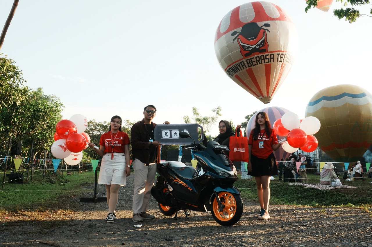 Di sisi lain, unit sepeda motor Honda—terutama model populer seperti Honda PCX160—juga tampil mencolok di tengah kemeriahan warna-warni balon udara yang menghiasi area festival.
